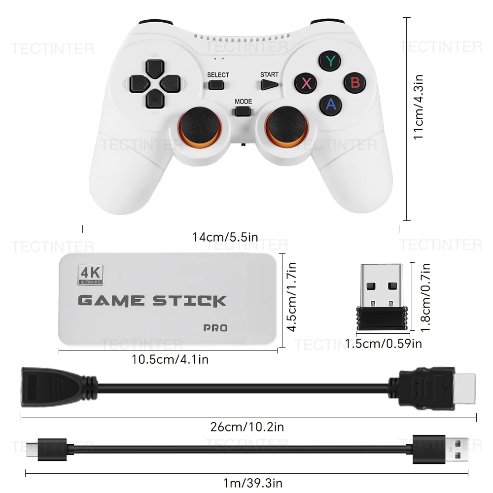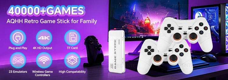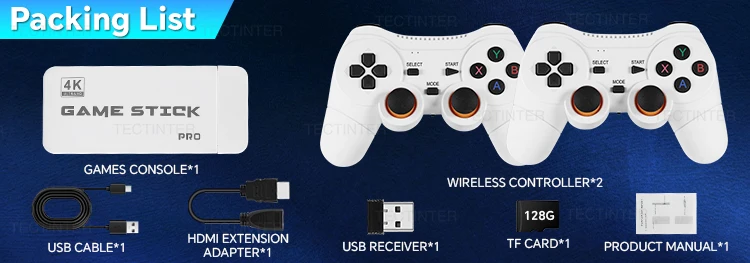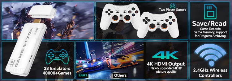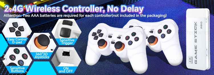 The portable mini game stick 4K TV games has a light and compact body.Plug and play, does not take up too much space, and is easy to carry, suitable for travel and home use.This video game console is suitable for ultra-high-definition TV/computer/monitor/projector, supports HDMI-compatible connection , has 1080P HD image quality, and can enjoy lively and interesting video games on the big screen.